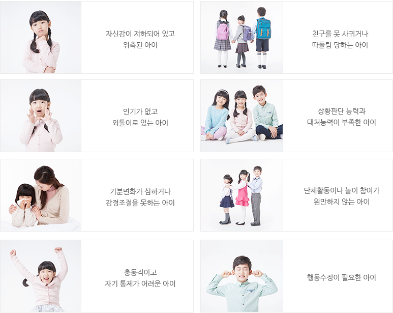 프로그램은 사회성 기술의 습득을 통하여 의사소통기술이나 자기표현방법, 또는 또래 수용기술 및 학업기술 등을